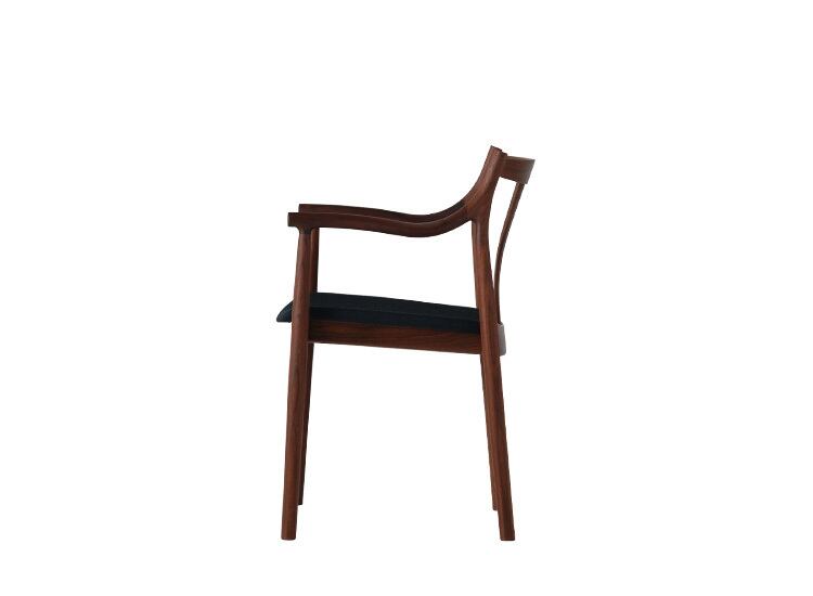 手になじむ河原の小石のように、に長い年月を経た自然の造形をお手本に、人の手で丁寧に美しく削り磨かれて生まれたチェアです。セミアームタイプで立ち座りを邪魔することなく、着座時には肘をあずけてリラックスできます。お尻にフィットするよう成形された厚めの座板が上質な座り心地です。