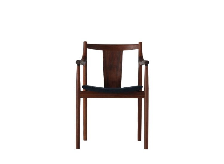 手になじむ河原の小石のように、に長い年月を経た自然の造形をお手本に、人の手で丁寧に美しく削り磨かれて生まれたチェアです。セミアームタイプで立ち座りを邪魔することなく、着座時には肘をあずけてリラックスできます。お尻にフィットするよう成形された厚めの座板が上質な座り心地です。