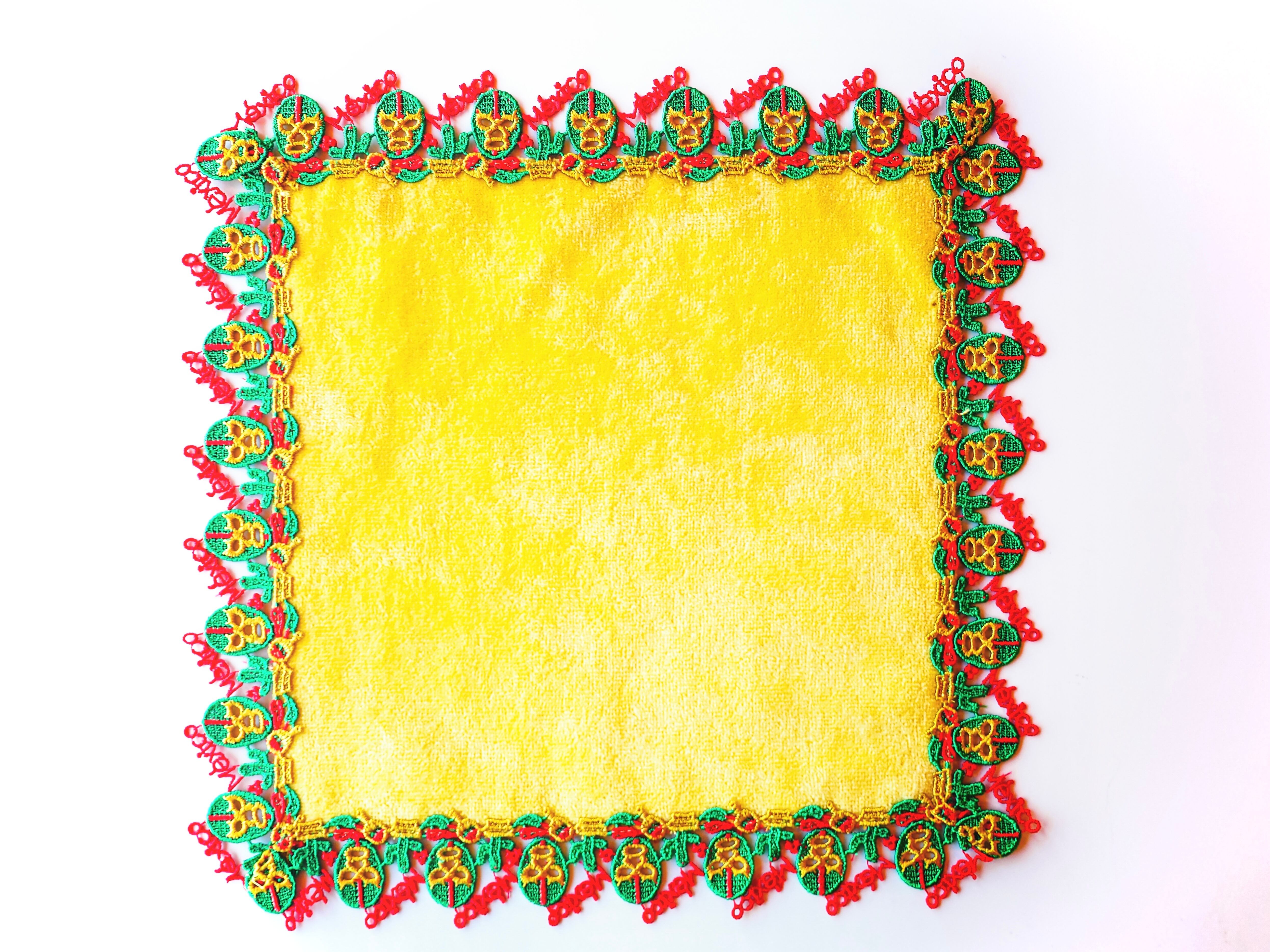 通常のハンカチとしての機能を十分に果たしながらも、おしゃれで遊び心溢れる一枚。サイズは使いやすいコンパクトなサイズ感で、持ち運びにも便利です。日常使いはもちろん、特別な日のアクセントとしてもおすすめです。