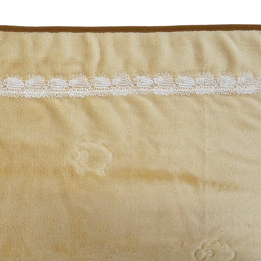 【近沢レース】巾着ポーチ付きブランケット シープ(ベージュ)