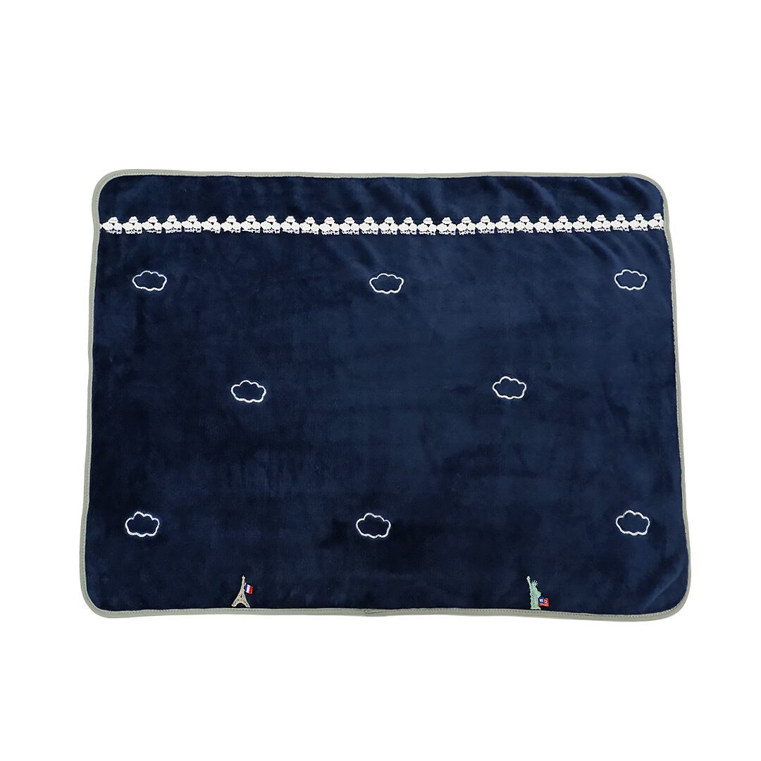 美しいネイビーの世界旅行デザインが施されたこのブランケットは、柔らかな素材感とともに、温かさを提供する一品です。リラックスタイムや寒い季節に、心地よいひとときを体感できることでしょう。また、便利な巾着ポーチが付属しているため、外出時でもおしゃれに暖かさを持ち運ぶことが可能です。