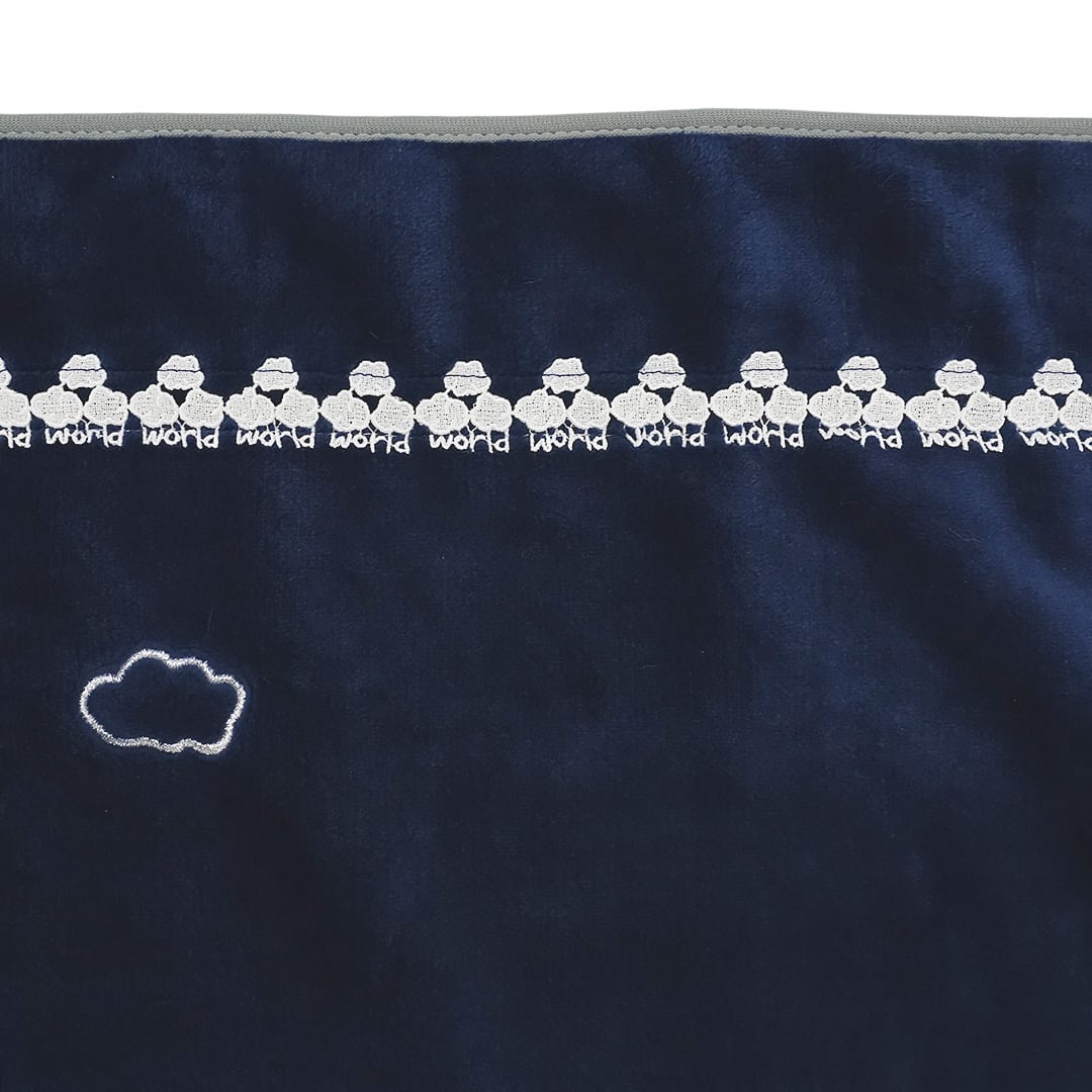【近沢レース】巾着ポーチ付きブランケット 世界旅行(ネイビー)