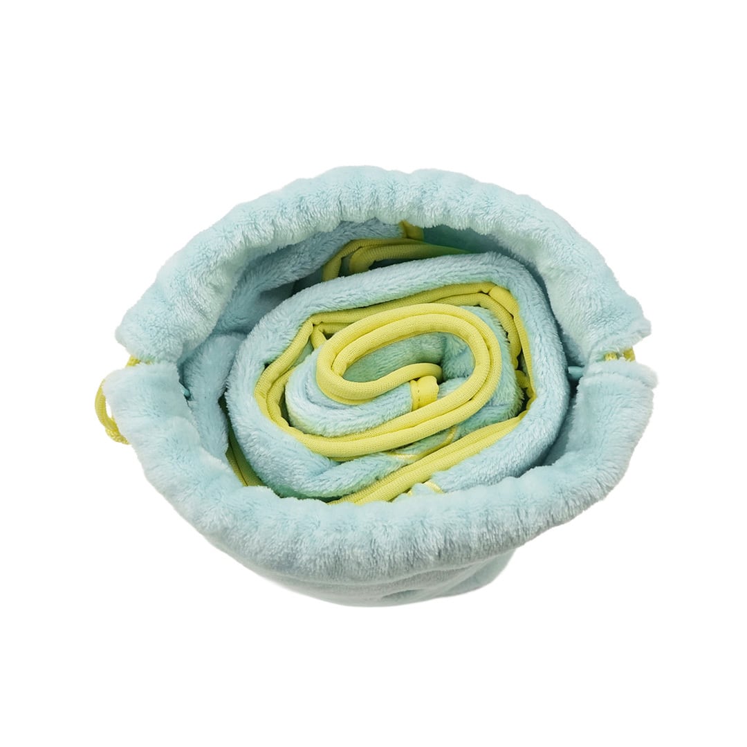 爽やかなライトブルーのシトラスデザインが施されたこのブランケットは、柔らかな素材感とあたたかさを贈る特別なアイテムです。リラックスタイムや寒い季節には、心地よい温もりを体感することができるでしょう。また、便利な巾着ポーチが付属しているため、外出時でもスタイリッシュに暖かさを持ち歩くことが可能です。