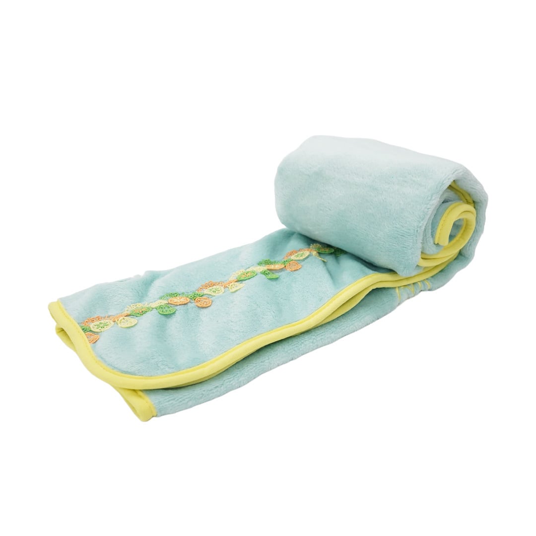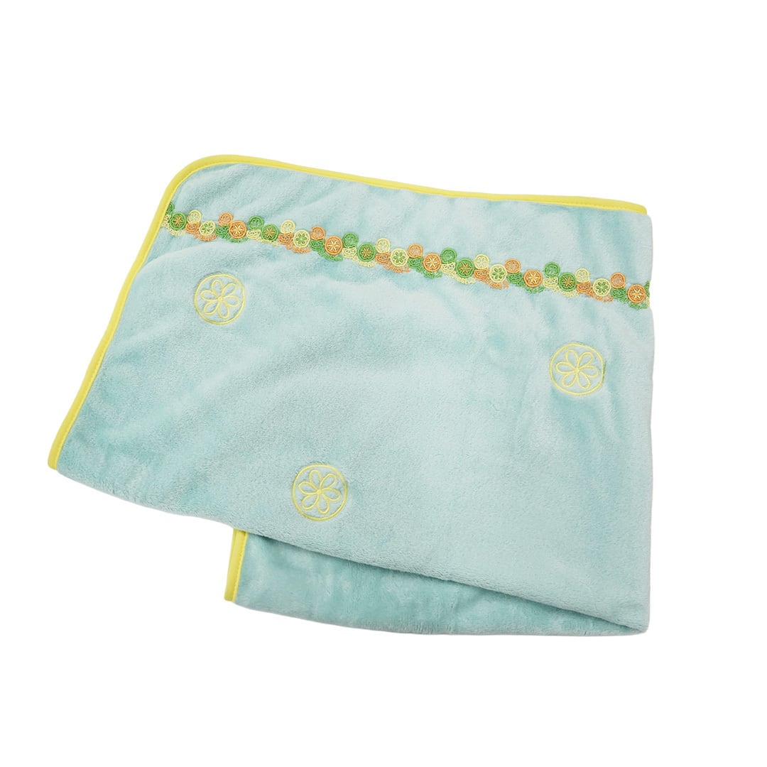 【近沢レース】巾着ポーチ付きブランケット シトラス(ライトブルー)