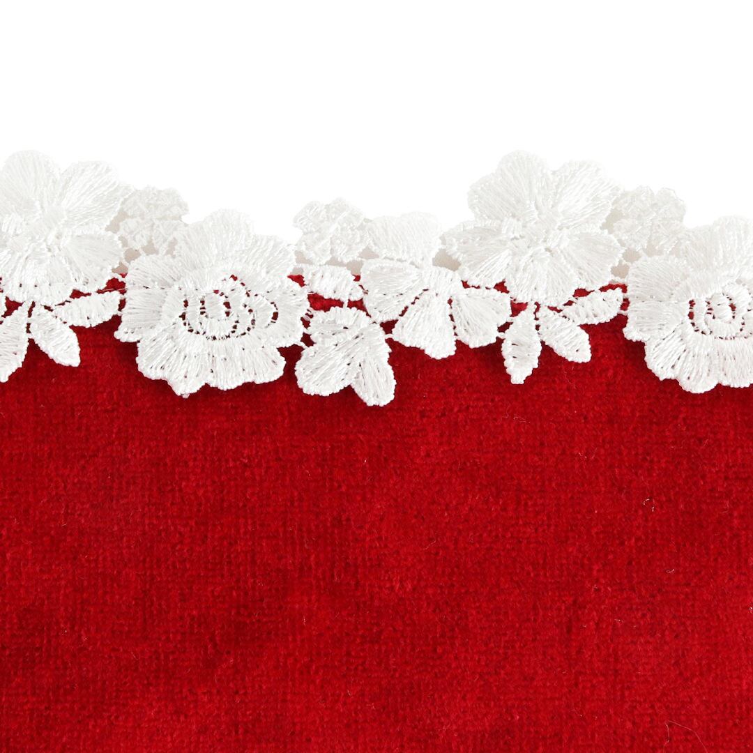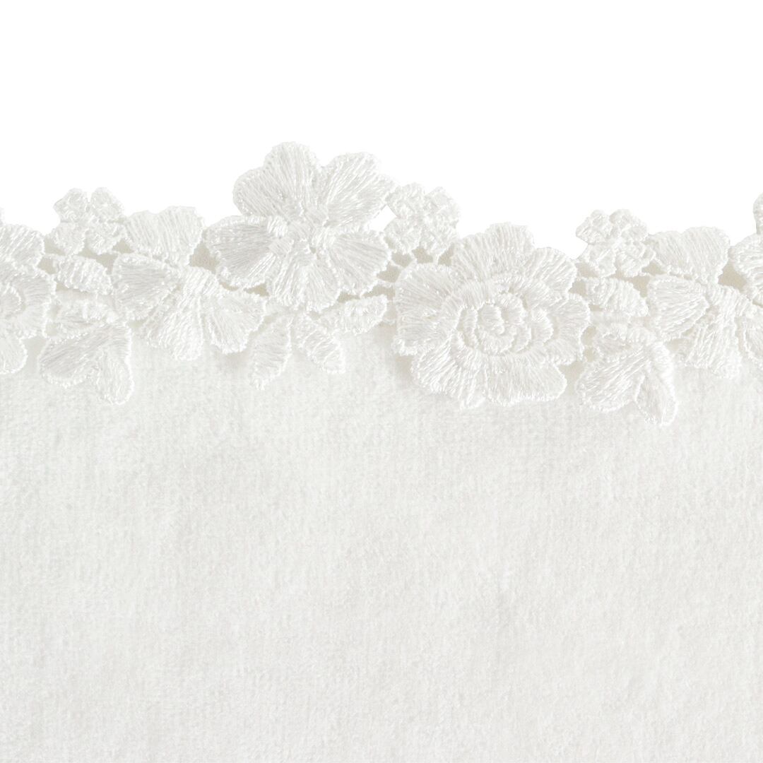 幾重にも重なる花びらのボリューム感と、上品に輝く糸の光沢が織りなすレースは、ひと目で心を奪う贅沢な仕上がり。クラシカルでありながら、どこか新しさも感じさせる佇まいが魅力です。