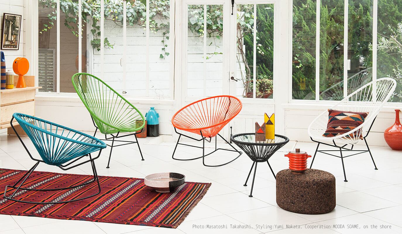 「アカプルコチェア」は、メキシコのリゾート地で愛されてきたアウトドアチェアを現代的にリデザインした、新定番のラウンジチェアです。