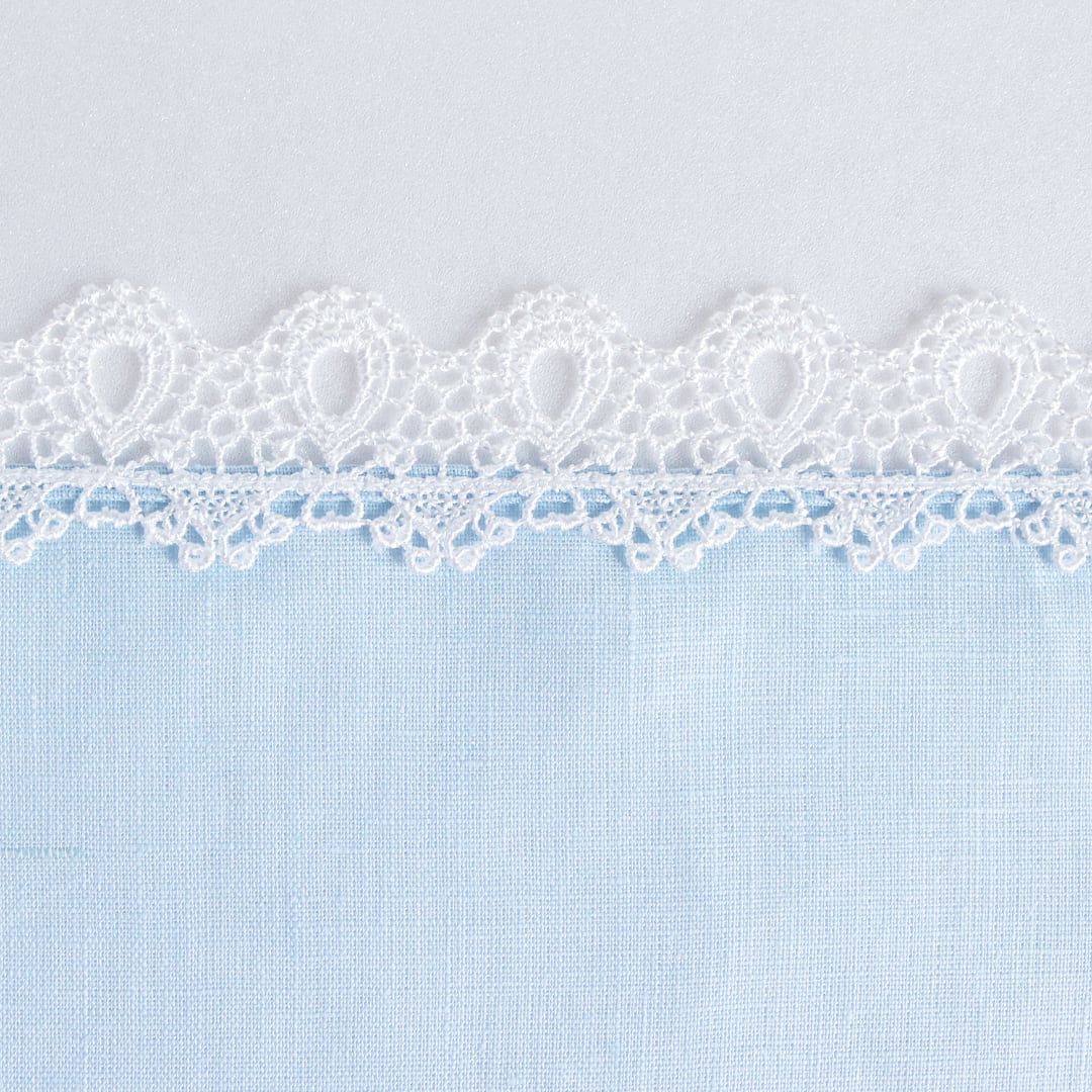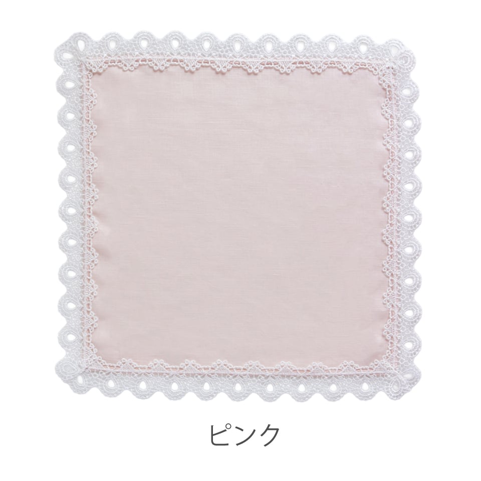 世界有数の産地・リトアニア産の上質なリネンに、贅沢なギュピールレースをあしらい、凛とした美しさと存在感を演出。ハンカチとしてはもちろん、ひざ掛けやポケットチーフとしても使える多用途な一枚です。