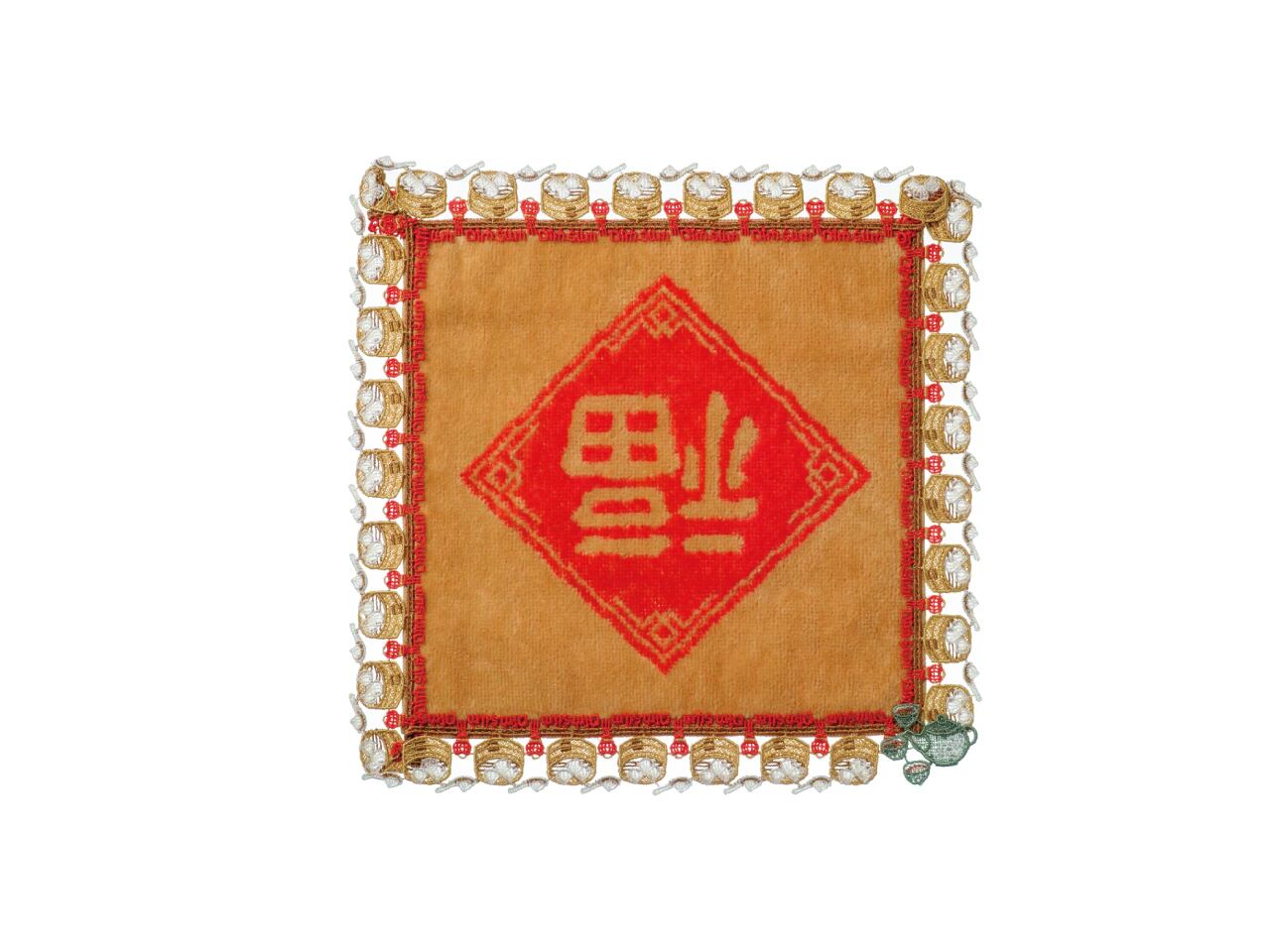 中国で親しまれる“福”の字を逆さに飾る風習にちなみ、「幸福が訪れますように」という願いをデザインに込めました。小籠包のスープまで表現した細やかな意匠が、思わず笑みを誘います。