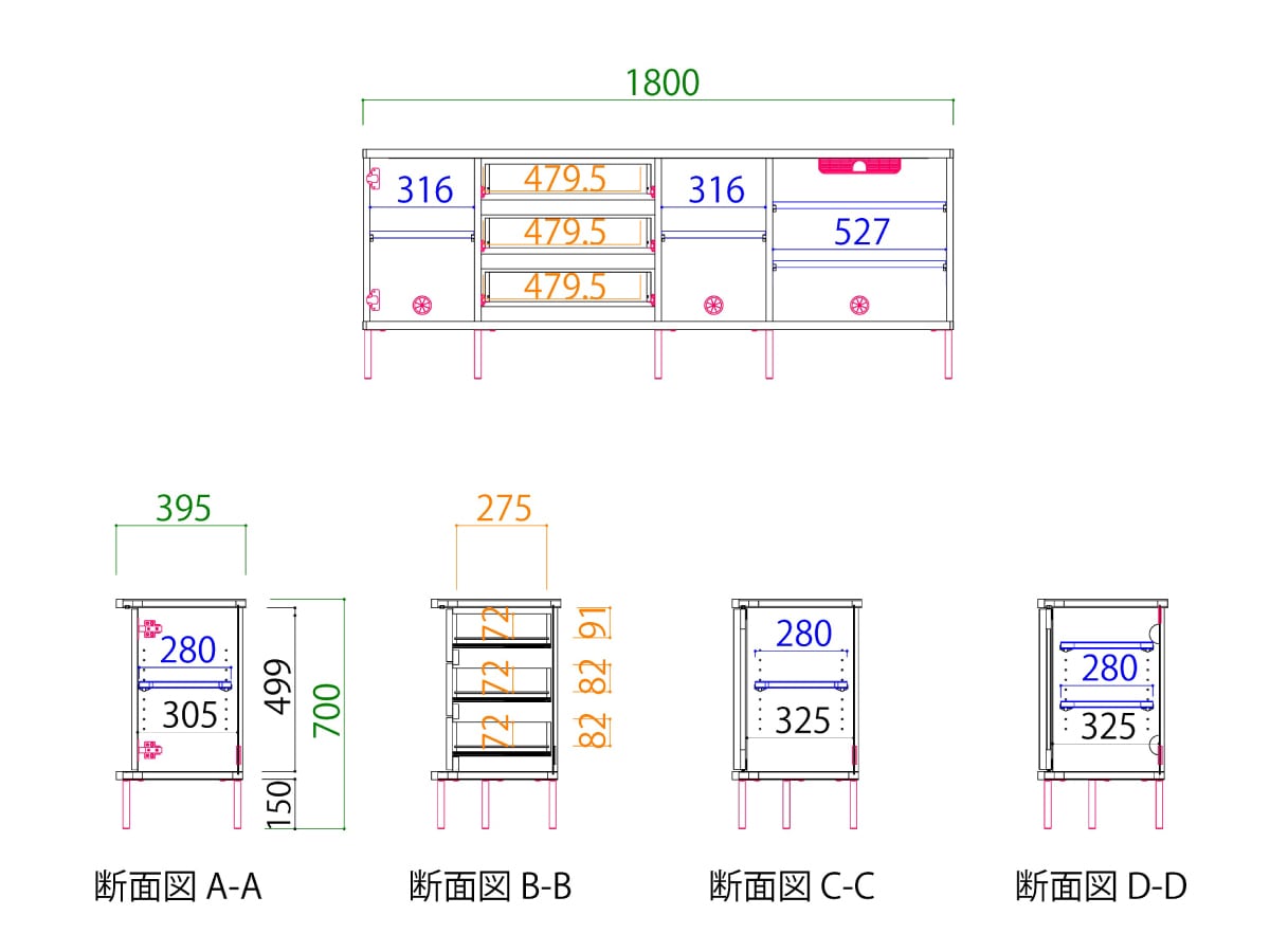 ・商品サイズ:幅180 × 奥行39.5 × 高さ70cm